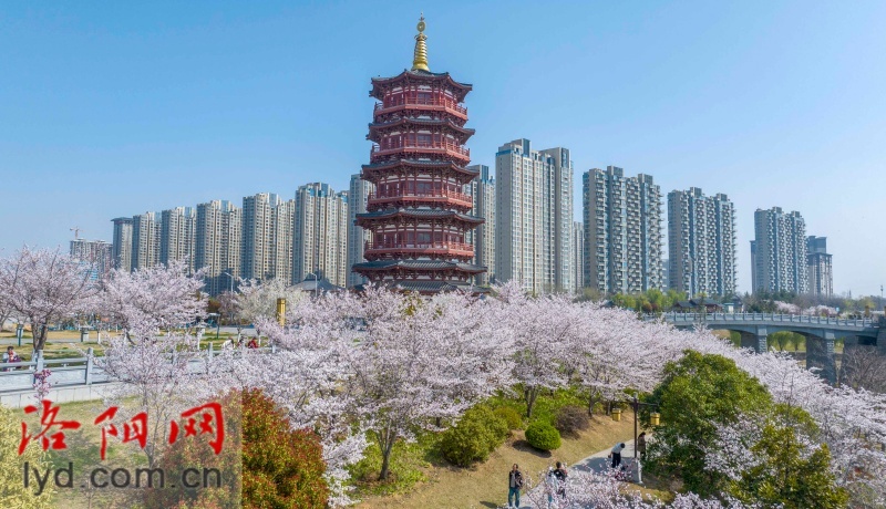 El 20 de marzo, las flores de primavera alrededor de la pagoda Zhu Ying en Luoyang y a lo largo de la «avenida Cherry Blossom» en el terraplén sur del parque Luopu estaban en plena floración, presentando una escena encantadora que atrajo a los ciudadanos a detenerse y admirar.