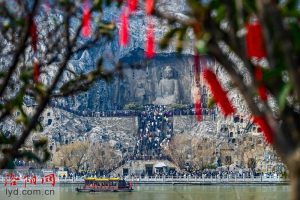 Pendant les vacances du Nouvel An, les touristes sont venus dans la zone pittoresque des grottes de Longmen pour apprécier le charme unique des sculptures sur pierre millénaires et savourer