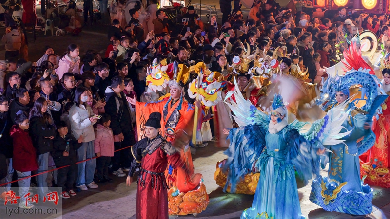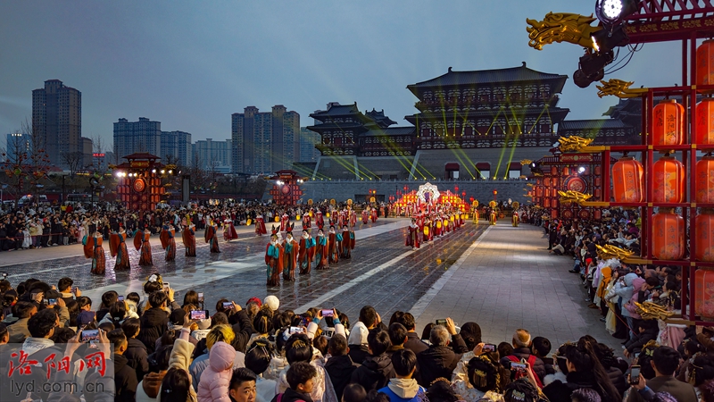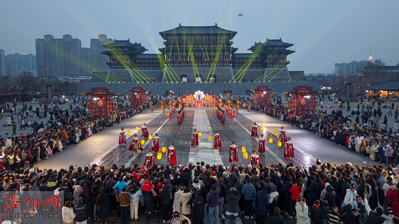Le soir du 2 mars, sur la place nord de la porte Yingtian sur le site de la ville de Luoyang des dynasties Sui et Tang, les touristes se sont immergés dans le spectacle et ont célébré l’arrivée du festival des lanternes.