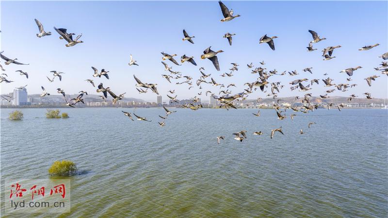 最近、宋県呂漢湖国立湿地公園は、冬のための渡り鳥の多数を歓迎しています。