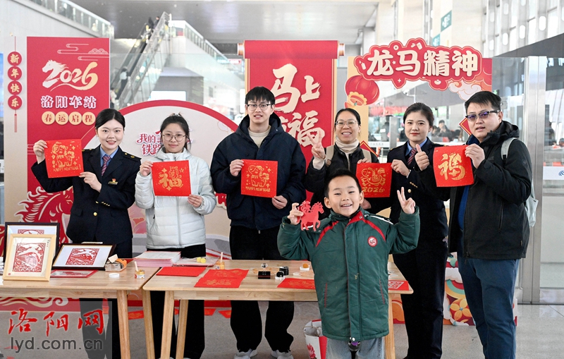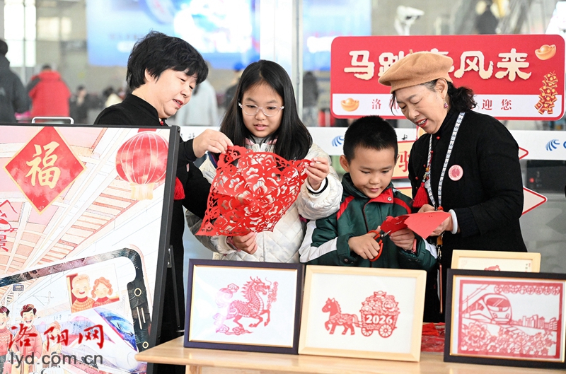 2月1日、洛陽龍門駅の待合室で、乗客たちは紙を切ったりこすったりする技術などの無形文化遺産を体験し、獅子舞やヘウオ太鼓のパフォーマンスを楽しみ、伝統文化の魅力に浸りました。その日、洛陽駅では「龍馬魂が千マイルを飛び越える-私の鉄道風景」2026年春節旅行ラッシュキックオフイベントが開催され、乗客と無形文化遺産の継承者が一緒に「無形文化遺産新年の味」春節旅行ラッシュの旅に出るよう招待されました。2026年春節旅行ラッシュは2月2日に正式に開始されました。