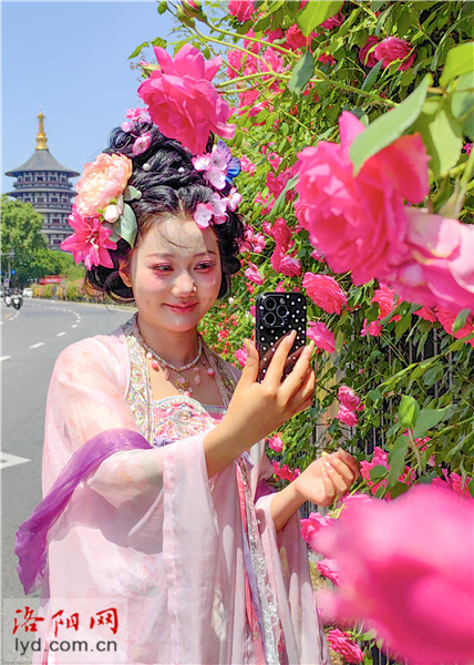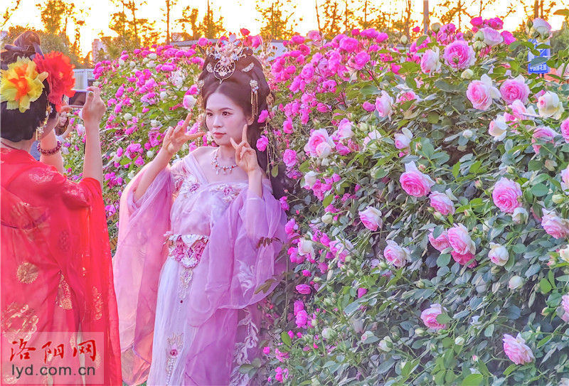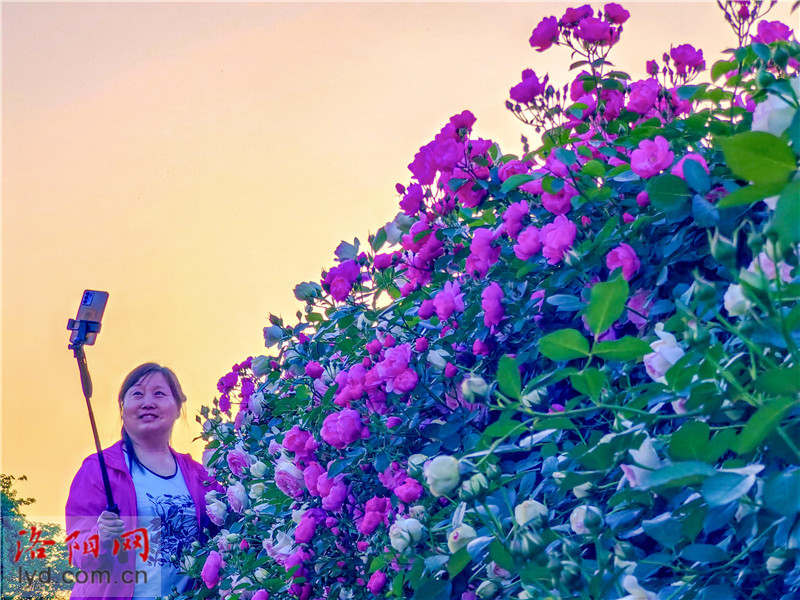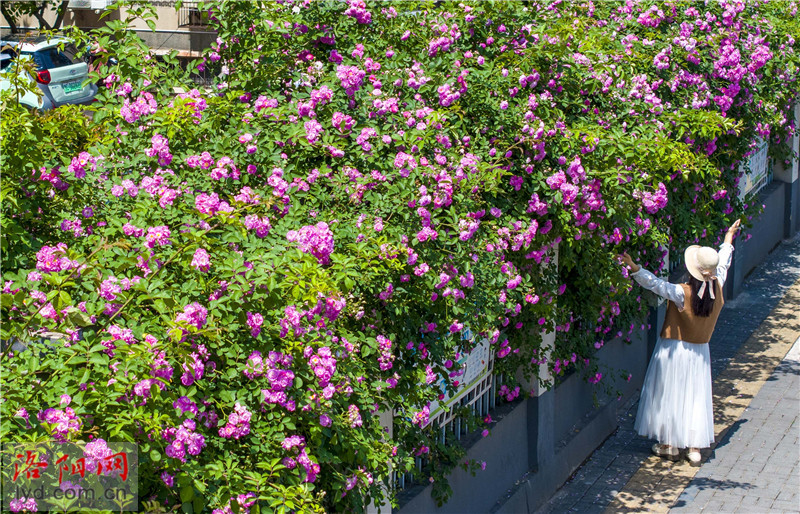 최근 잉톈먼 경치와 무단교 남쪽, 뤄양시 빈허북로를 중심으로 장미와 중국이 연이어 피어오르며 낭만적인 ‘꽃벽’을 형성하고 있어 시민들의 사진 촬영과 체크인이 이어지고 있다.