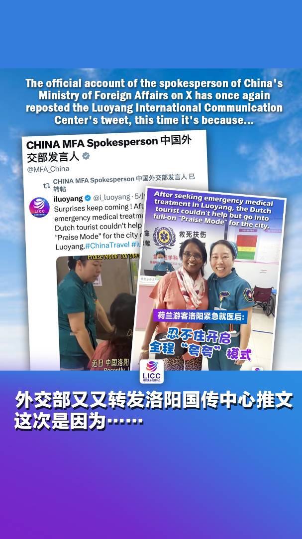 The official account of the spokesperson of China’s Ministry of Foreign Affairs on X has once again reposted the Luoyang International Communication Center’s tweet, this time it’s because…中国外交部发言人X平台官方账号又又转发洛阳国传中心推文,这次是因为…… #国际化洛阳连接中 #洛阳国际传播中心 #LICC 点击关注@洛阳国际传播中心 2025-09-17