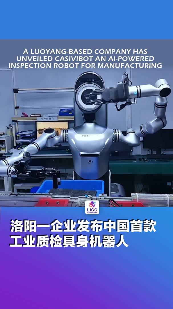 A Luoyang-based company has unveiled CASIVIBOT an AI-powered inspection robot for manufacturing.洛阳一企业发布中国首款工业质检具身机器人,该产品将在汽车、电子、新能源、半导体等行业应用落地,引领我国工业质检迈向“具身智能和生态协同”的3.0时代。#LICC#洛阳国际传播中心 点击关注@洛阳国际传播中心 2025-09-01