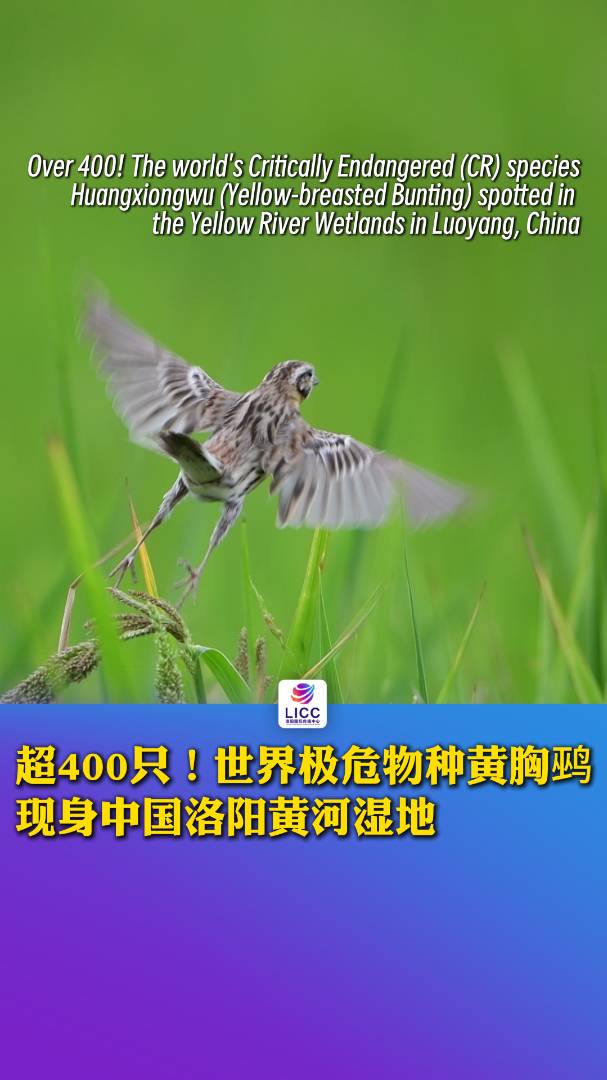 Over 400! The world’s Critically Endangered (CR) species Huangxiongwu (Yellow-breasted Bunting) spotted in the Yellow River Wetlands in Luoyang, China.罕见,快来围观!近日,超400只世界极危物种黄胸鹀(wú)现身中国洛阳黄河湿地,感受洛阳好生态。(记者 郭学锋)#国际化洛阳连接中 #洛阳国际传播中心 #LICC 点击关注@洛阳国际传播中心 2025-09-01